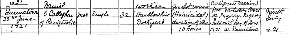 1921 Jun 21 Shot in Cork