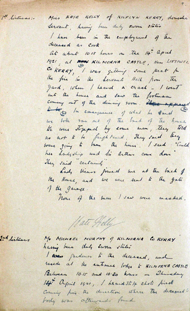 1921 Apr 14, Shot at Kilmorna Castle, Kerry