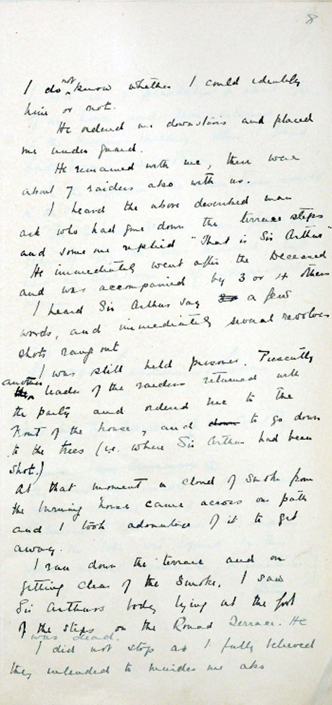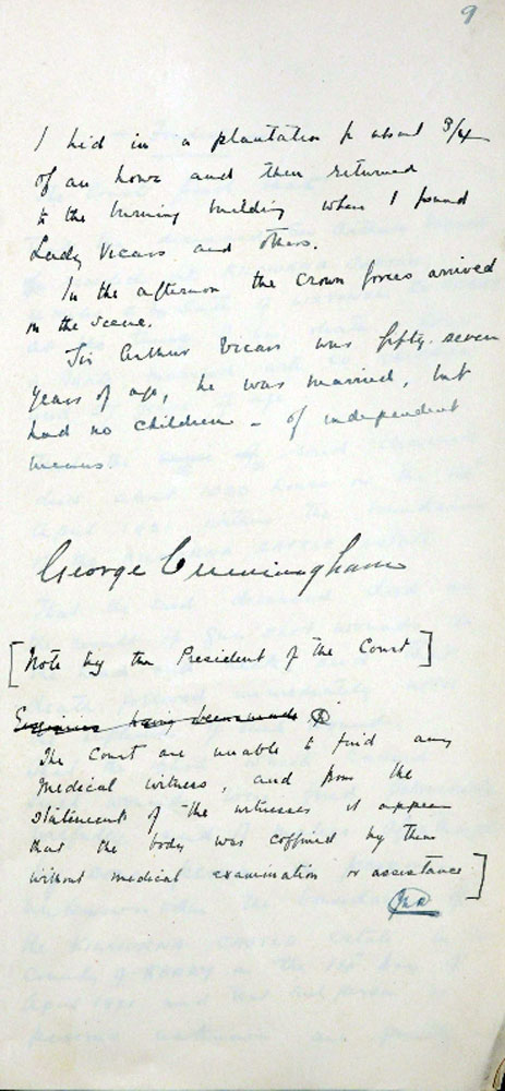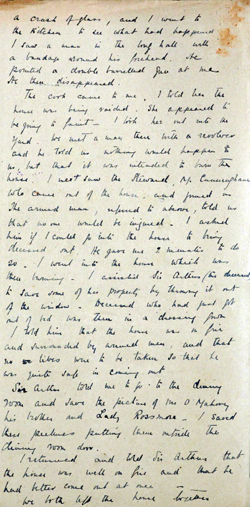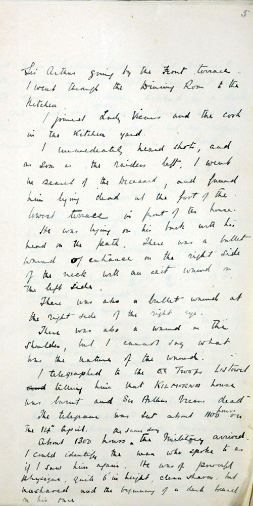 IRA Witness Statement Vicar's valet describes the burning of the house and Vicar's death. The valet was associated with the IRA and did not think that Vicars was dealt with fairly, and that he was not a spy