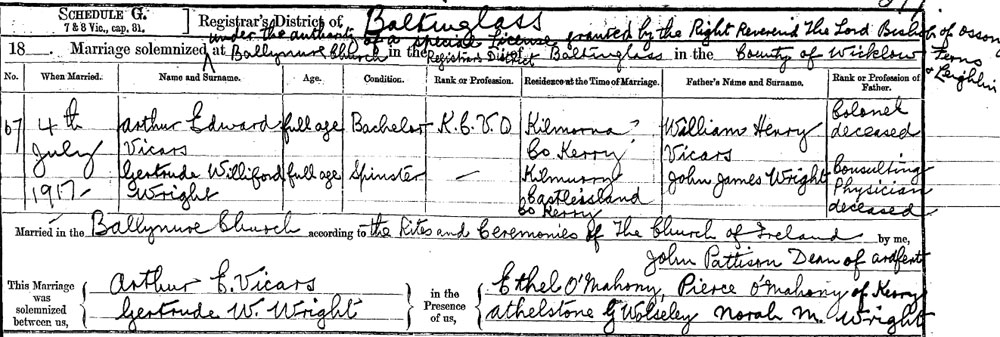 1907 Marriage to Gertrude Winifred Wright (1854 to 1946)