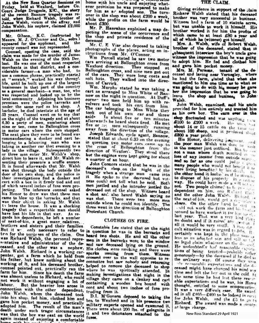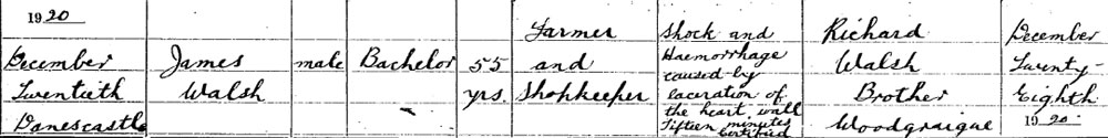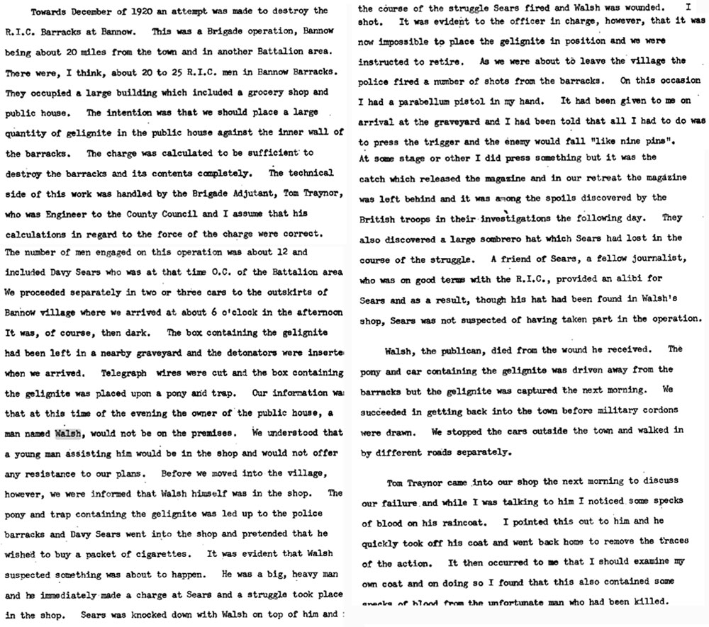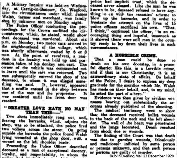1920 De 20. Shot Bannow , Wexford during an IRA attack on the RIC Barracks