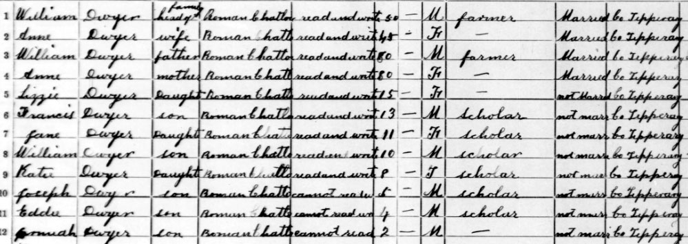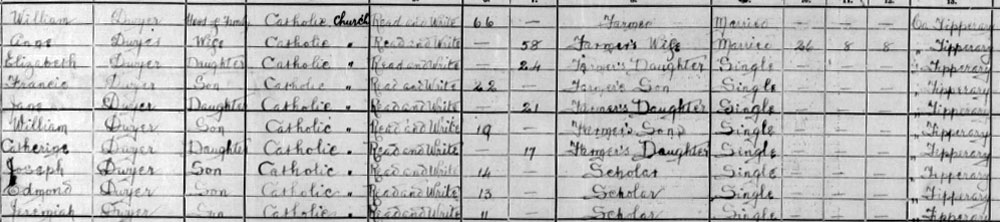 1911 census at Ballydavid, Templeneiry, Tipperary