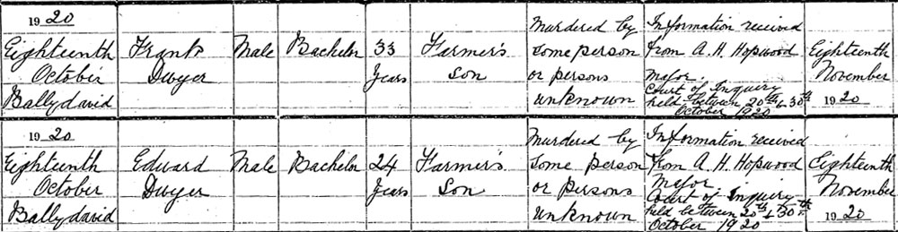 1920 Oct 18, Killed at Bansha, Tipperary
