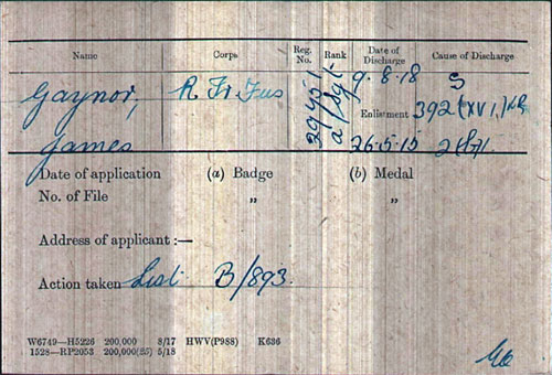 1918 Aug 8. Discharged fom Royal Irish Fusiliers as an Acting Sgt. He was living at 236 Springfield Rd