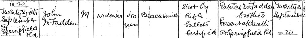 John McFadden lived at 54 Springfield Road.