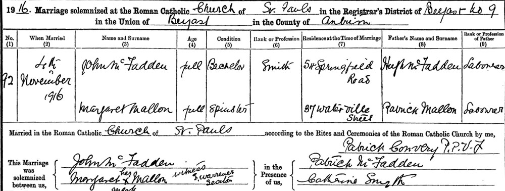 1916 Nov 4. Married in Belfast