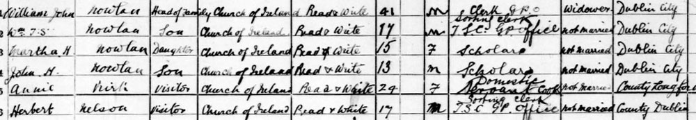 1901 census at 7 Leinster Avenue, North Dock, Dublin