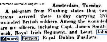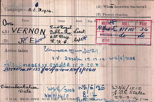 1919 Feb 4 Appointed Adjutant 3rd E. Dub. Fus.—Capt. J. E. Vernon, R.Dub. Fus,