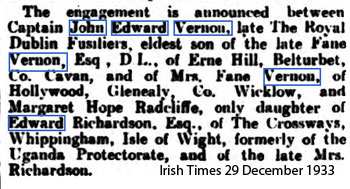 1924 Jan 16 Son John Fane Vernon born. Dublin
