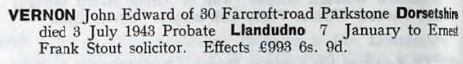 1943 Jul 3 Died Poole, Dorset