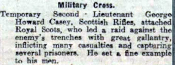 1940 Jun 26. Commissioned Lt in R Scots: — Capt. George Howard CASEY, M.C. (115600).