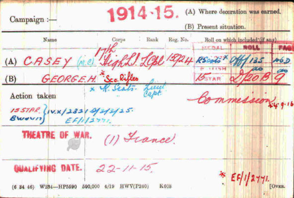 1919 Nov 19. R. Scots.Temp. Lt. G. H. Casey, M.C., relinquishes his commission on completion ofservice, and is granted the rank of Capt