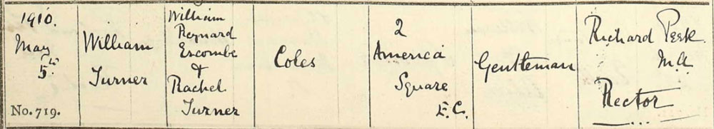 1893 Feb 25. Born London. Son of William Reynard Escombe Coles (note he was not baptised till 1910