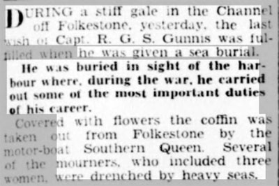 1936 Jun 2. Died Folkestone, Kent, England buried at sea. He was buried in sight of Folkestone Harbour where he carried out his most important duties of his career.