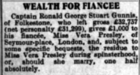 1936 Jul 16 Report of his will. Vera Presley married Harold Newberry in 1941.