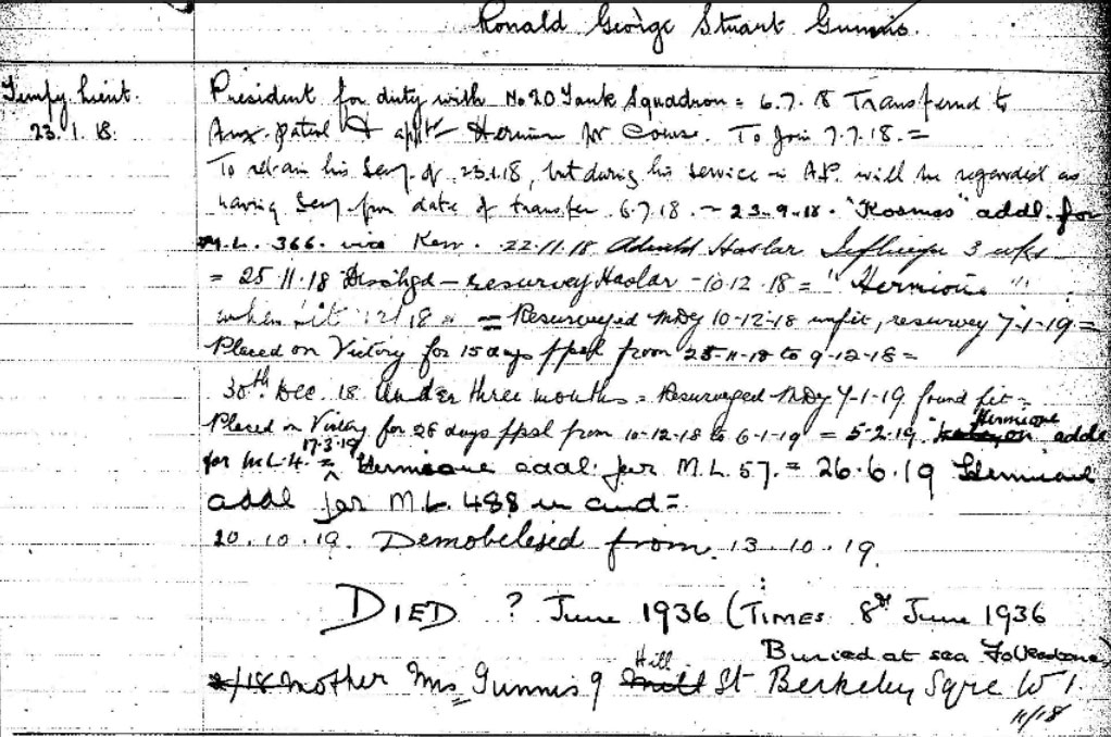 1917 Jul 4 Death of his Brother Ian Fitzgerald Stuart Gunnis (1891–1917) at Ypres, Belgium
