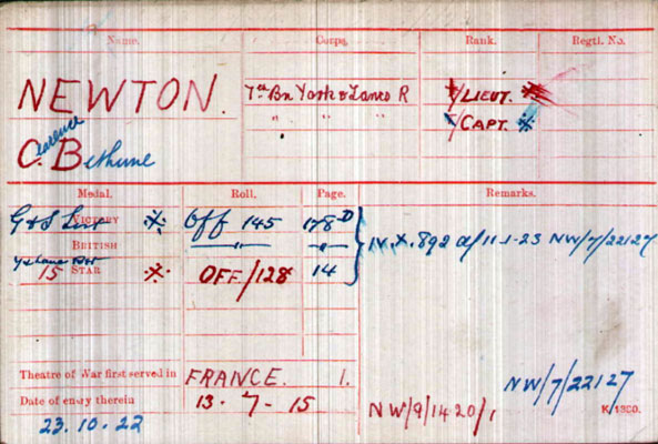 1920 Jun 24. . Capt C B. Newton, late Serv. Bn., York and Lane. R , to be temp Capt. whilst specially empld