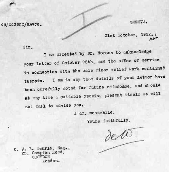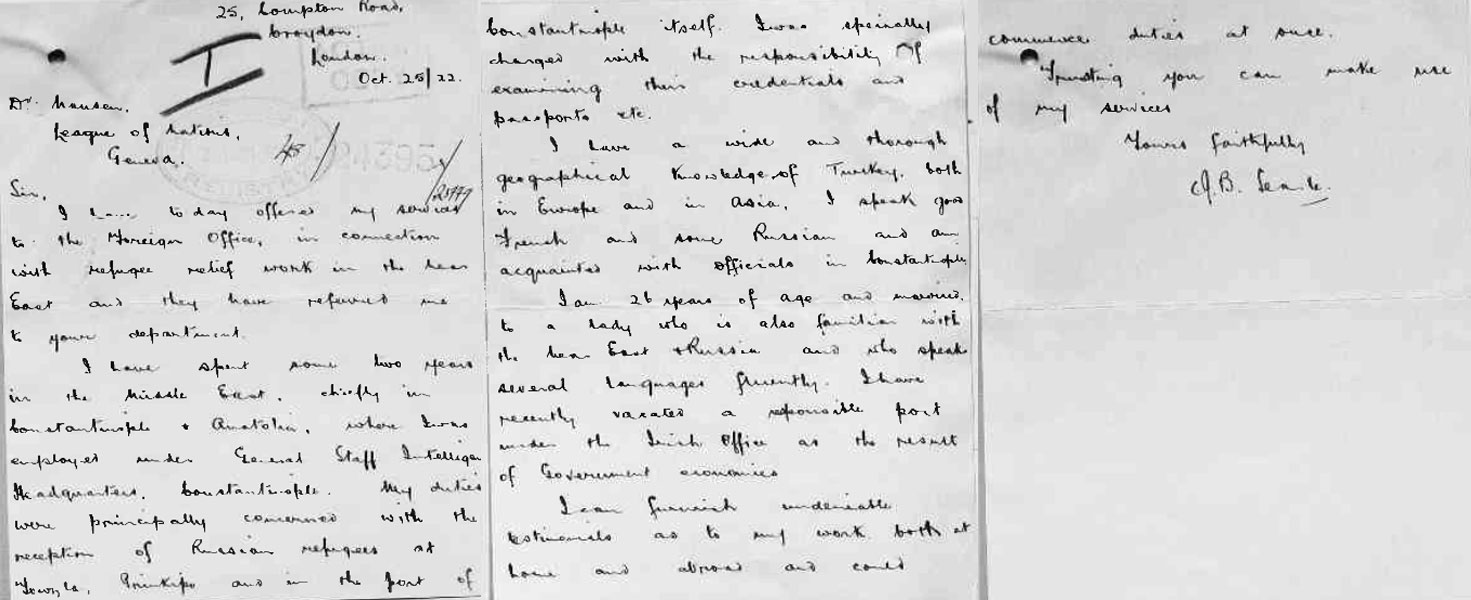 1919 - 1920. He worked in Intelligence in Istanbul for, he says 2 years.