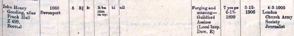 1899 Dec 6 • Guildford Assizes, Guildford, Surrey Forging & Uttering - 7 Years Penal Servitude (as Frank Hall)