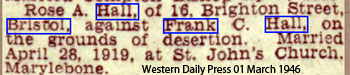1873 He was born Henry Folkes Hall in Bath and baptized as Charles Robert Hall in May 1874. He appears under the latter name in the 1881 and 1891 census returns when he was living in Bath with his grandparents. He is also married under this name when he married Ethel in 1894. After he and Ethel had moved to Bristol, the name Henry F. Hall appears again on the 1901 census return. His name once again reverts to Charles Hall in 1911 when he and his family are living at 15 Beaufort Road. In the 1918 electoral register he is living at the same address but using an amalgam of both names - Charles Robert Henry Folkes Hall. . On the face of it he was very ordinary person whose various occupations are given assistant bell hanger, gasfitter, plumber and bakery engineer! Unsurprisingly there are two death records for Charles Robert Hall and Henry Folkes Hall (the same person) in Bristol at the same time in 1938.