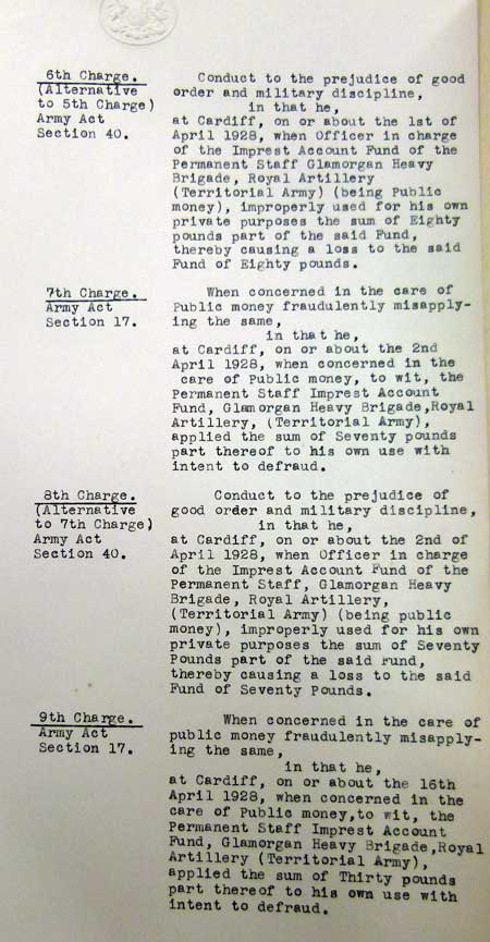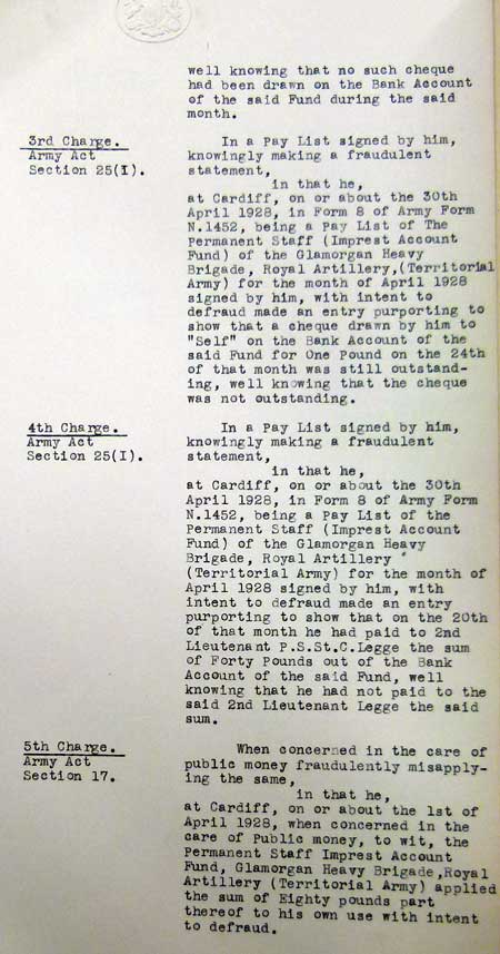 1928 Jul 28 he was courtmartialed over a cheque fraud