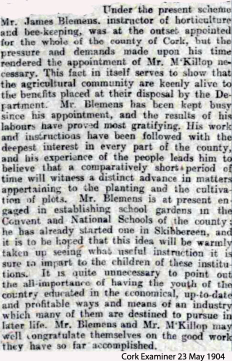 IRA Witness Statement On 1.12.1920, the house of a man named Blemings was raided on my directions and Blemings and his son taken away. They were both shot. These two were members of the senior spy section in the Y.M.C.A. Their names were given to me by Parsons. We also had information about them from letters captured by our lads in raids on postmen for mails.