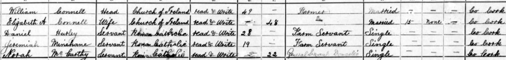 1901 census at Lissanoohig, Cloghdowell, Cork
