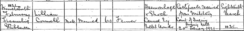 The widow was prevented from selling the farm by the IRA. She told the Irish Grants Committee in March 1927: ‘William Connell was murdered because he was a Protestant and loyalist, and Francis Sweetnam for similar reasons was not allowed to purchase the farm.’