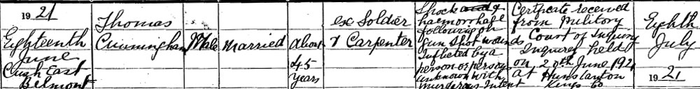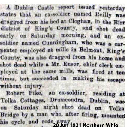1921 Jun 18. Shot in Cusheast, Balmount, Kings Co.