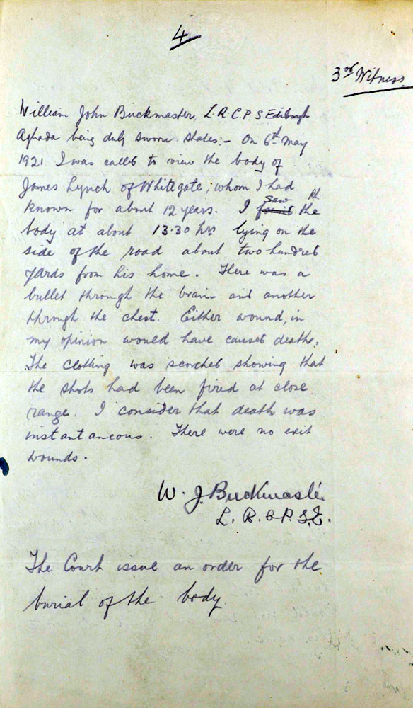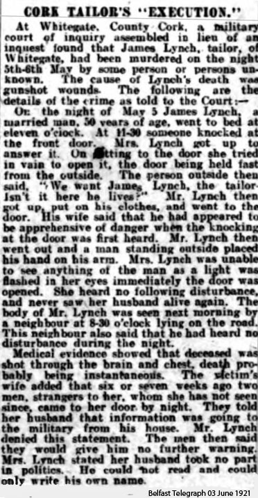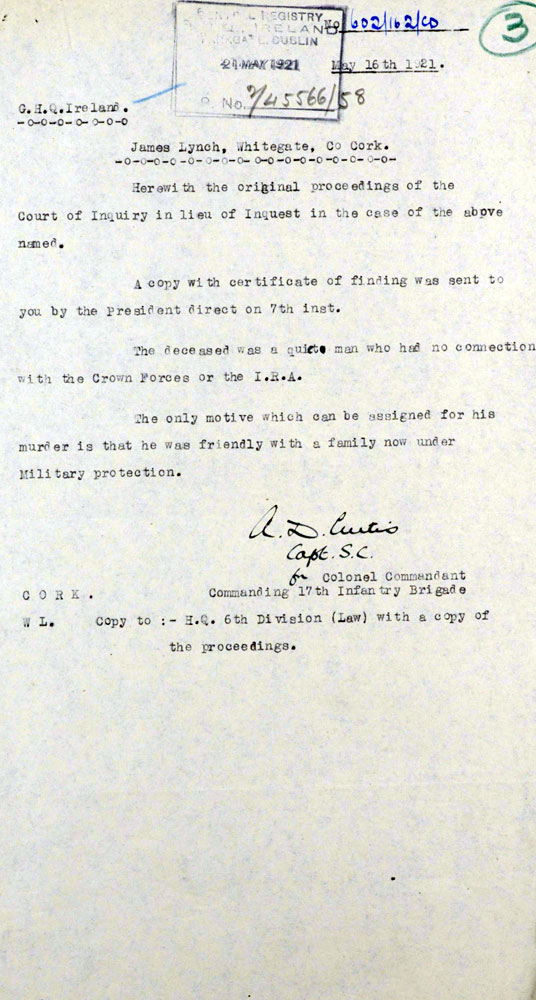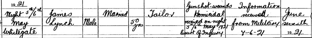 His widow was later awarded £725 compensation for the death of her husband. Register of Compensation Commission (Ireland) Cases of Private Persons (CO 905/15, TNA).