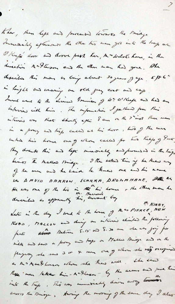 1921 Jul 7 Kidnapped near Mallow. Macpherson was bundled into a pony and trap on July 7, 1921, and taken a short distance outside Mallow, Co Cork. The was imprisoned for two days at Gleanndine,
