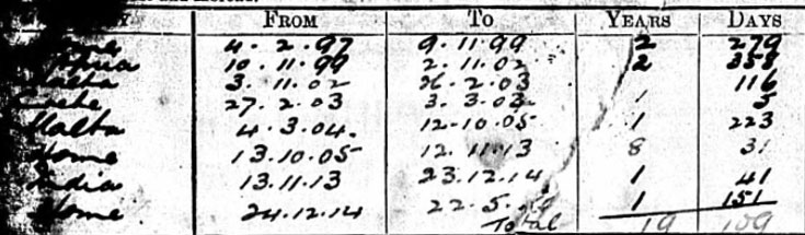 1914 Jan 2. His daughters birth cert shows that he is now reduced to a corporal in RDF