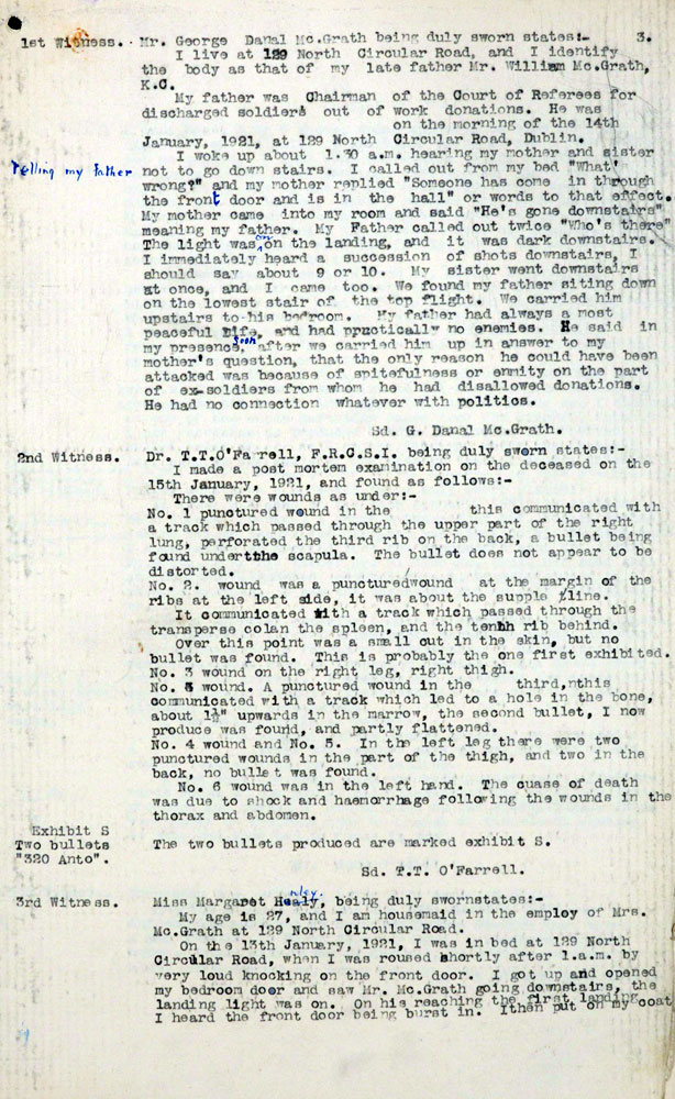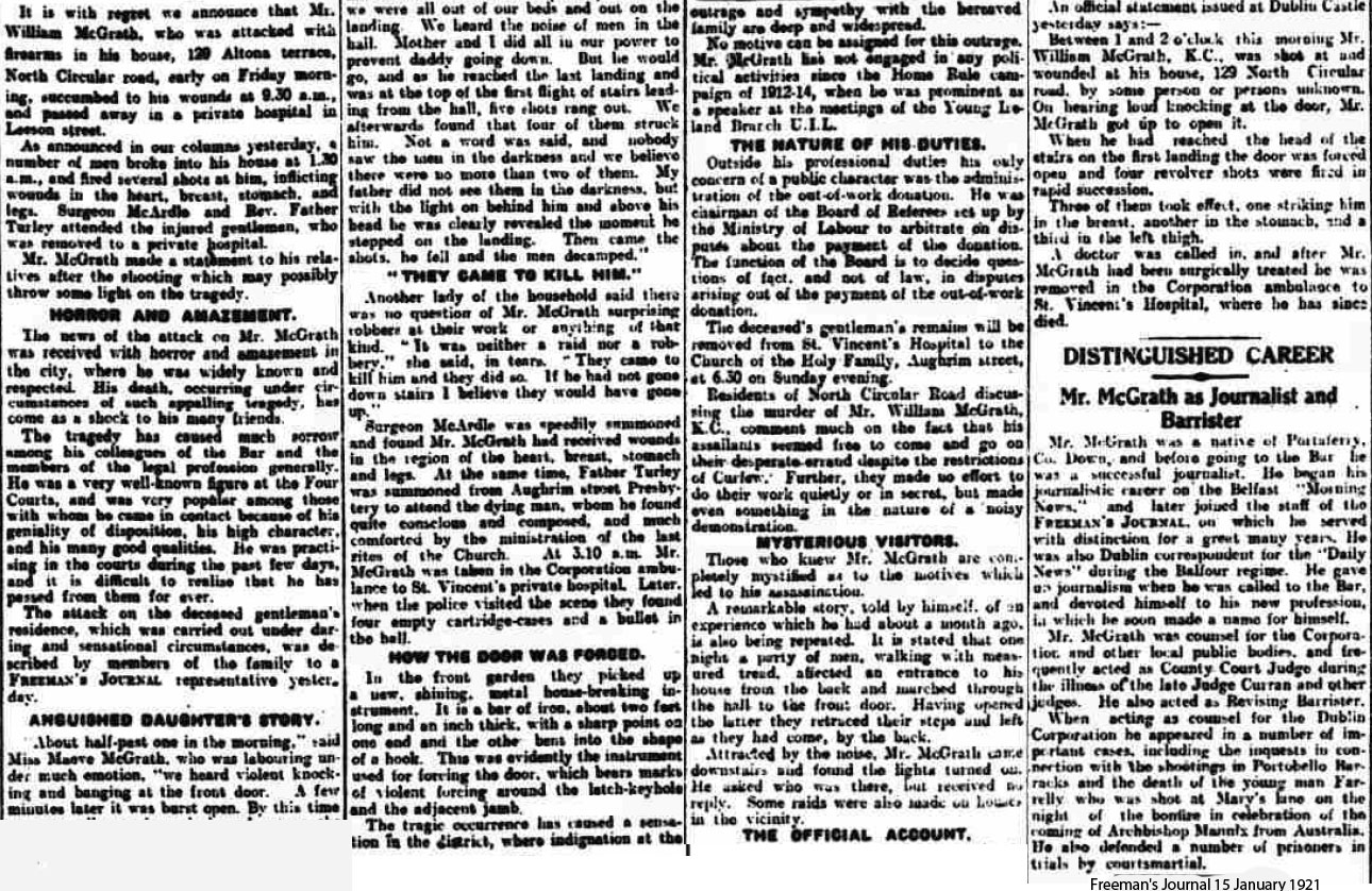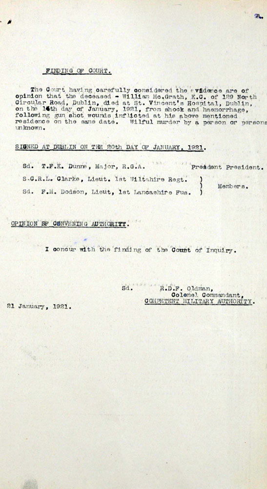 - Gertrude McGrath wife 38 born Co Down Children born Dublin City Henry Garrett McGrath 14, Donal George 13, Patrick Ronan 10, Maeve Gertrude 7, Aiden? William 5.