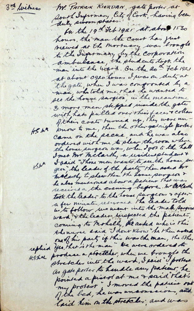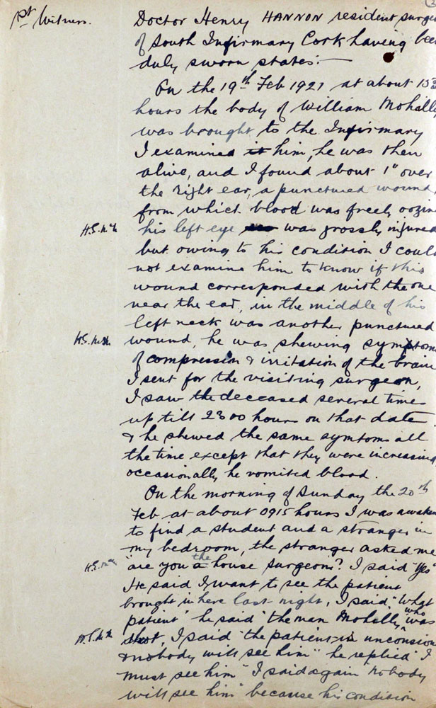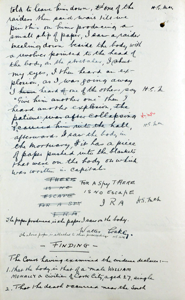 Witness Statement On 21st February 1921, Mulally (sic), a civilian spy, was shot on the Blackrock Road.