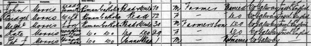 1901 census . The Morris family is at Loughcurra South (Kinvarra, Galway). But Thomas is not there