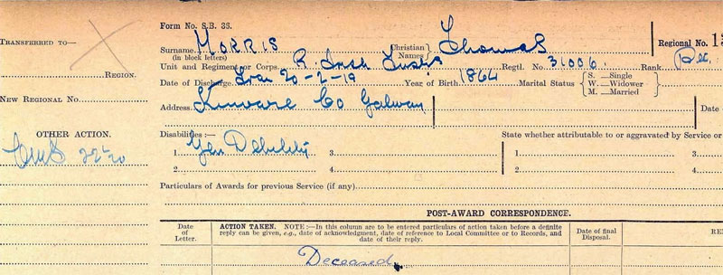 1864 Born Co Galway. His sisters Birth Cert shows their mother was Bridget (nee Jourdan) and father John Morris
