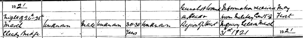 This is undoubtedly his death certificate, as it is at Cleady Bridge and the correct day.