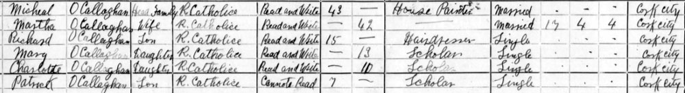 His mother Mary appears to be a widow in the census, working as a servant in Cork