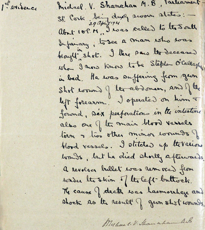 1921 Apr 29 Shot in Cork