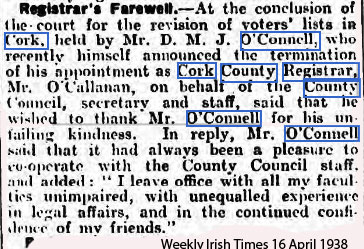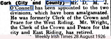 1926 Aug 28. Appointed County Registrar for Cork