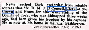 1921 Jul 10. Disappeared in Cork on his way from Mass in Skibbereen