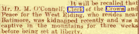 1917 He is Clerk of the Crown and Peace at Skibbereen Court