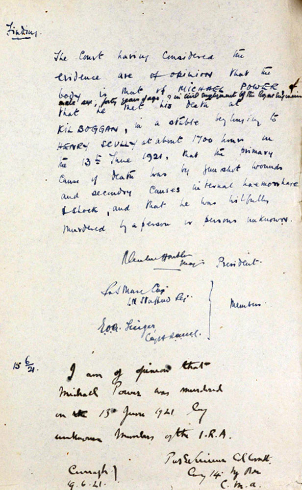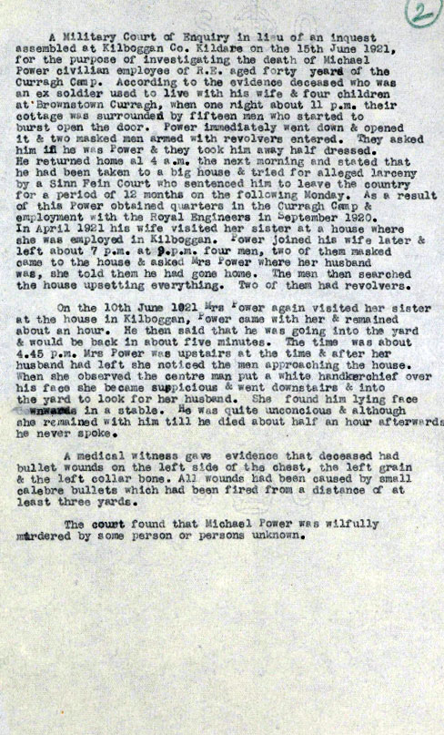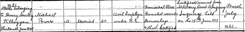 1921 June 10. Michael Power ex-soldier civilian employee of the Royal Engineers at the Curragh Camp shot dead aged 40