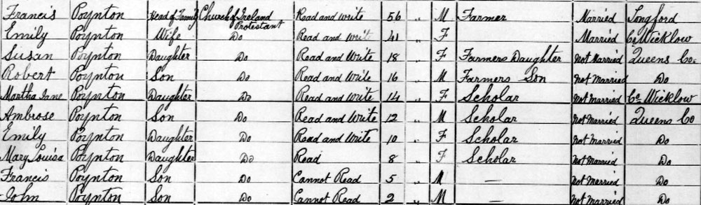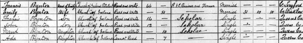 1911 Census living at Kilbride, Ballybrittas, Queen's Co.