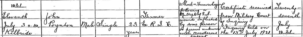 TNA File Death of John Poynton; 11th July, 1921; Kilbride, Portarlington, County Laois.