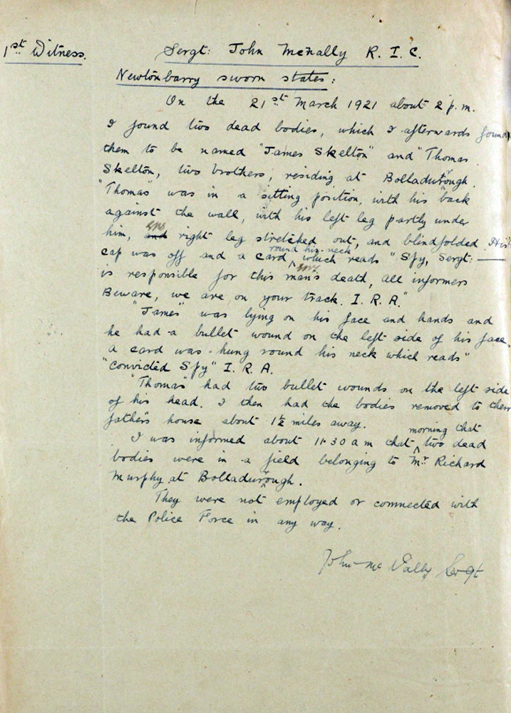 1921 March 21. Shot in Co Wexford