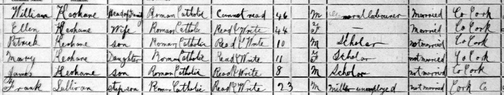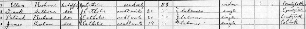 1911 Census with mother and step brothers at East Rock, Rosscarbery