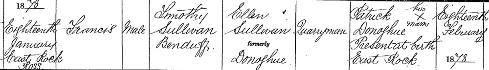 1878 Jan 18 Born East Rock, Rosscarbery