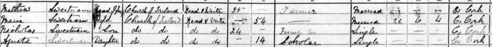 1911 census - Lissanoohig, Cloghdowell, Cork