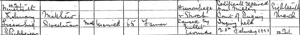 1921 Feb 19. Shot in Cork the same night as Connell